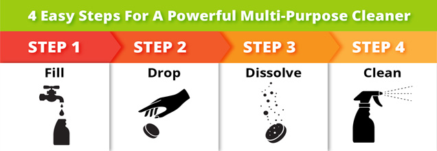 1 Tablet makes 500ml of Multi-Purpose Spray & Wipe